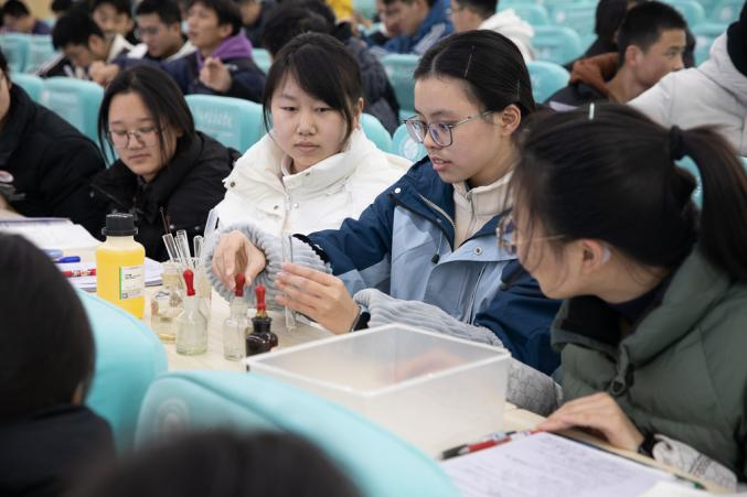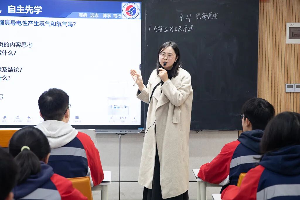 化学组凸显实验设计与学科素养。马敏老师以空间站氧气来源视频引入《电解原理》,对实验进行微型化改进,强化动手能力。刘雨松老师围绕《元素周期表》设计分类、观察、总结、记忆等递进活动,借助挂图等多种形式突破难点。毕业年级开展《沉淀溶解平衡》同课异构,刘潇老师以“钡餐造影剂”问题引入,通过电导率实验激发质疑;罗加春老师则组织分组实验,结合动画微观演示,深化理解。