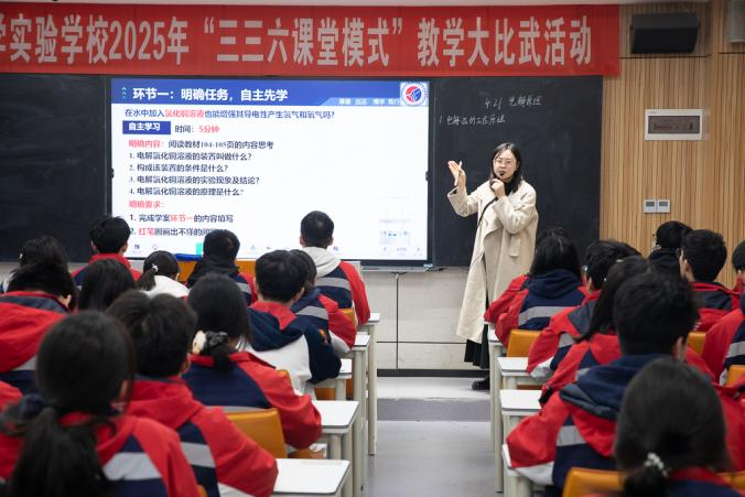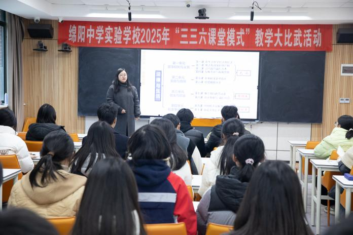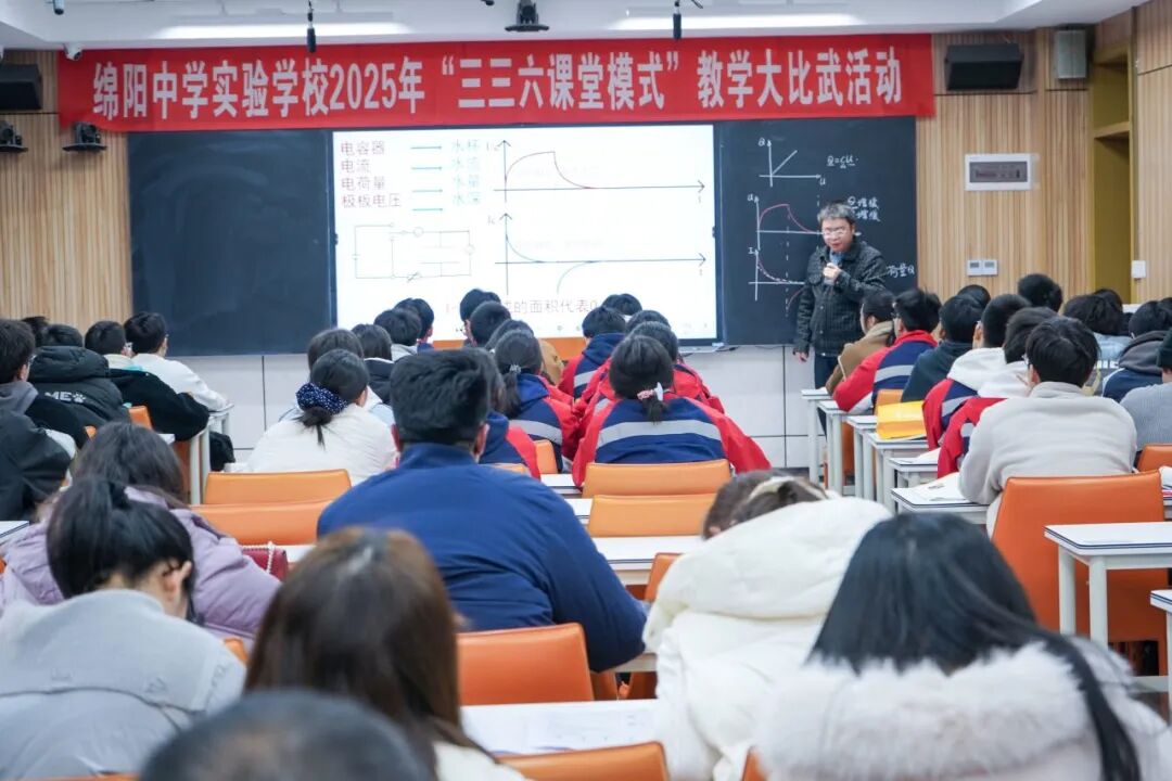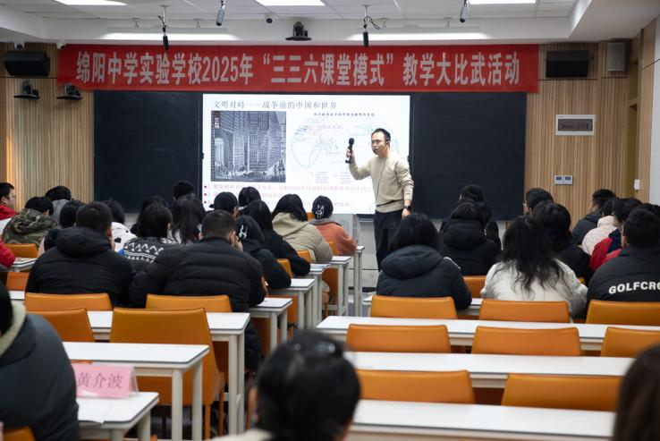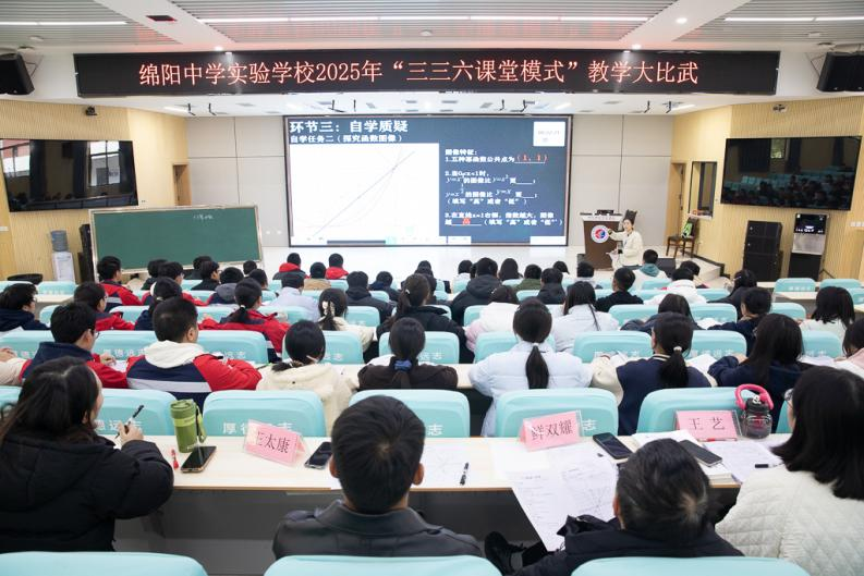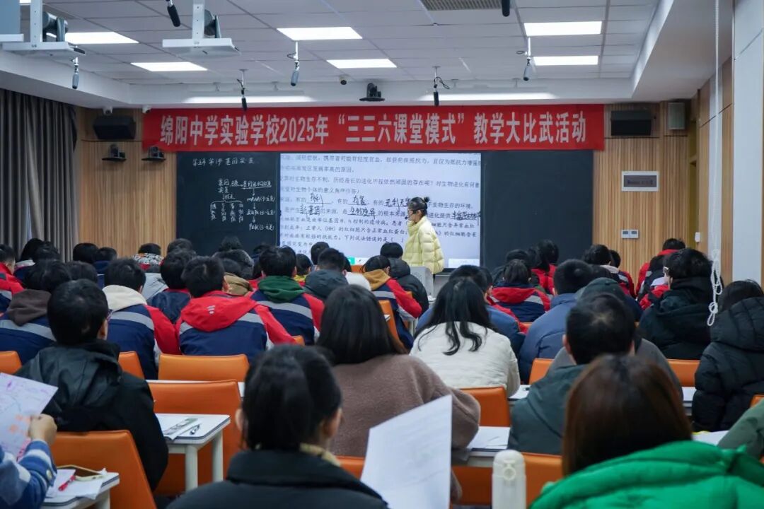 为持续推进和探索课堂模式创新,绵阳中学实验学校于2025年11月24日至12月11日开展了各学科“三三六课堂模式”教学大比武课赛活动。该模式是我校“三主教学理念”与“洋思模式三阶段”的有机融合与实践探索,坚持以学生为主体、以思维训练为主线、以自主探究能力提升为主旨,贯彻“先学、后教、当堂训练”,全面培养学生自主学习、合作探究与问题解决能力。比赛中,各科教师不仅积极践行该模式理念,突出学生主体地位,而且通过情境创设、动机激发、路径设计、学习支持、过程评价与内容拓展,有效突破教学重难点,亮点频出,展现出丰富的教学智慧与创新活力。