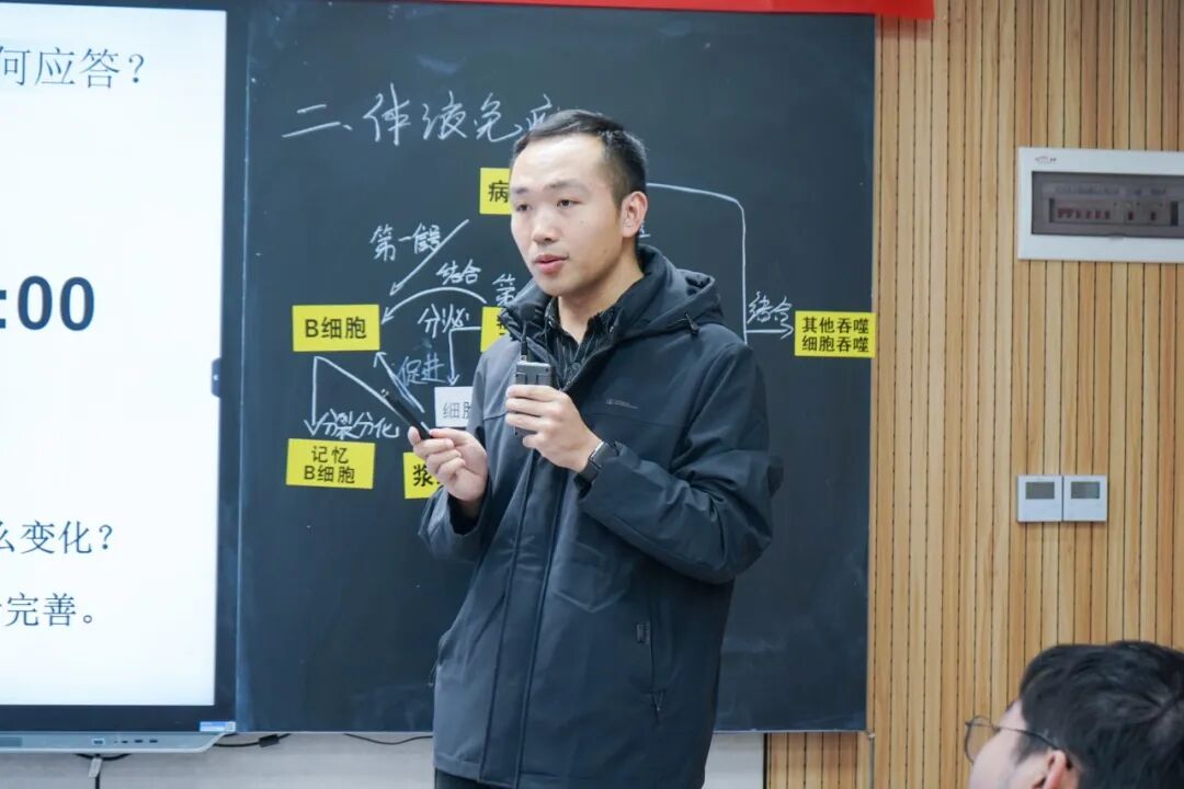 生物组关注情境创设与模型建构。林碧秀老师以“人工合成淀粉”视频导入《光合作用的原理》,形成“情境—问题”探究闭环。周利老师在《特异性免疫》中引导学生绘制思维导图,并设计物理模型构建活动。毕业年级开展《基因突变》同课异构,赵雪妃老师以“地中海贫血治疗”为任务,引导学生理解基因突变本质;方小同老师则以肺癌发病率为情境,通过“自学质疑—教师精讲—实践落地”模式引导学生提出防治方案。