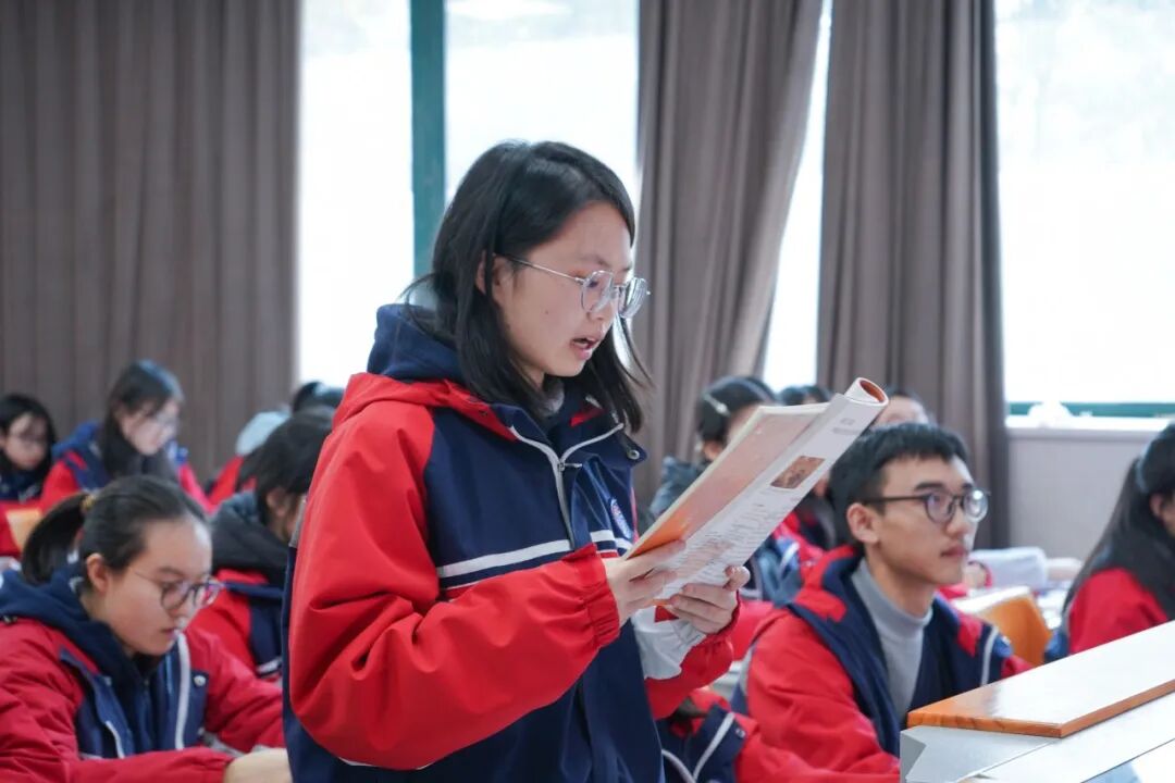 语文组赵雅吉老师在《于琴音品共鸣,自诗文觅珍技——琵琶行》一课中,以聆听音乐、“文声相契连连看”小游戏引入新课,以“乐声—人生—笔墨”为主线,掌握“音乐描写技巧”,引导学生体悟情技音三者的有机融合。吴勇老师讲授《复活》时,“问题式教学模式”得到明显体现,通过对聂赫留朵夫人物形象的探讨,探究小说《复活》的主旨。张远老师用日常生活中挑选樱桃的问题引入《归纳推理:让议论文言之有据、言之成理》,创设问题情境,解决了如何用归纳推理思维使论据丰富、多元,使论证更具有说服力的问题。刘红老师讲授《曲径通幽寻诗意,拾级而上觅深情》,以掌握“七步循诗法”为核心要点,借助小组讨论、自主探究、师生互评等形式深化对“以我观物,物皆著我之色彩”的诗歌鉴赏理念的理解。